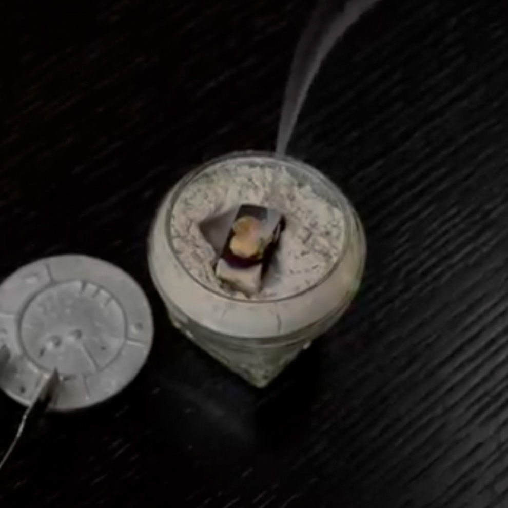 3 トングなどで白くなった炭の上に樹脂を置きます。(炭もお皿も熱くなりますので、ご注意ください)