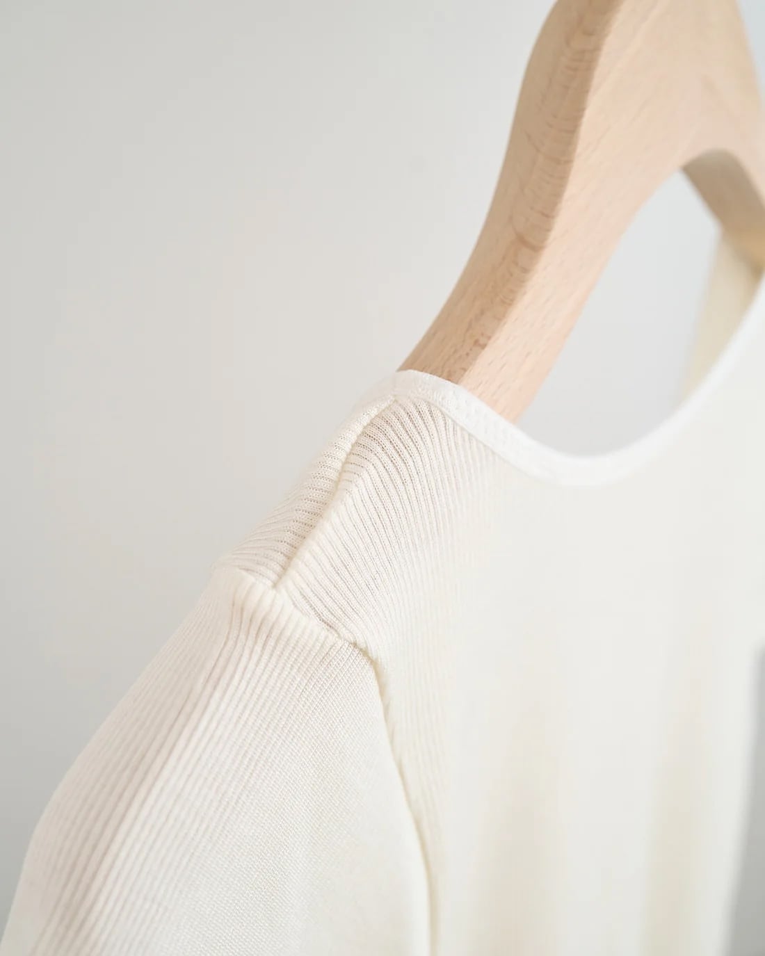 襟ぐりの空き具合にも、私たちのこだわりが詰まっています。