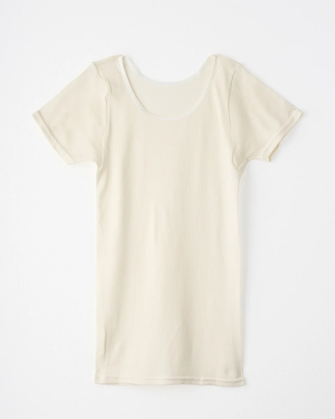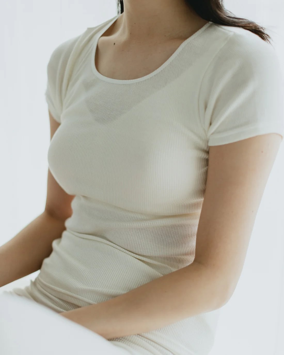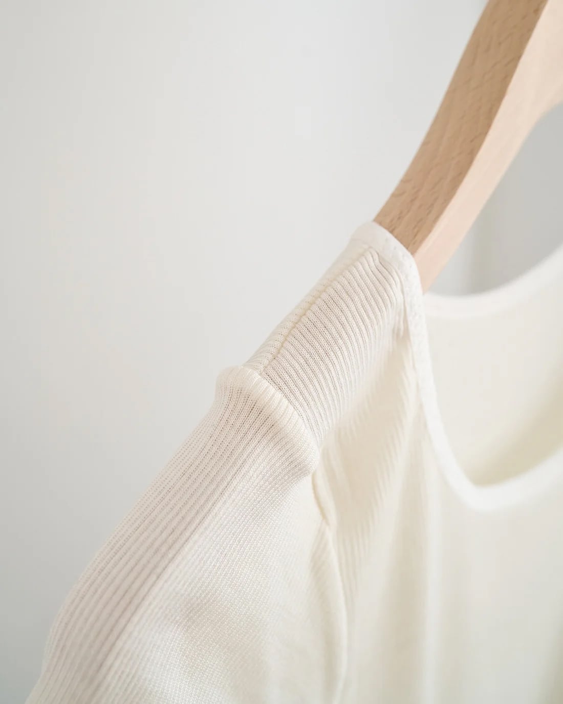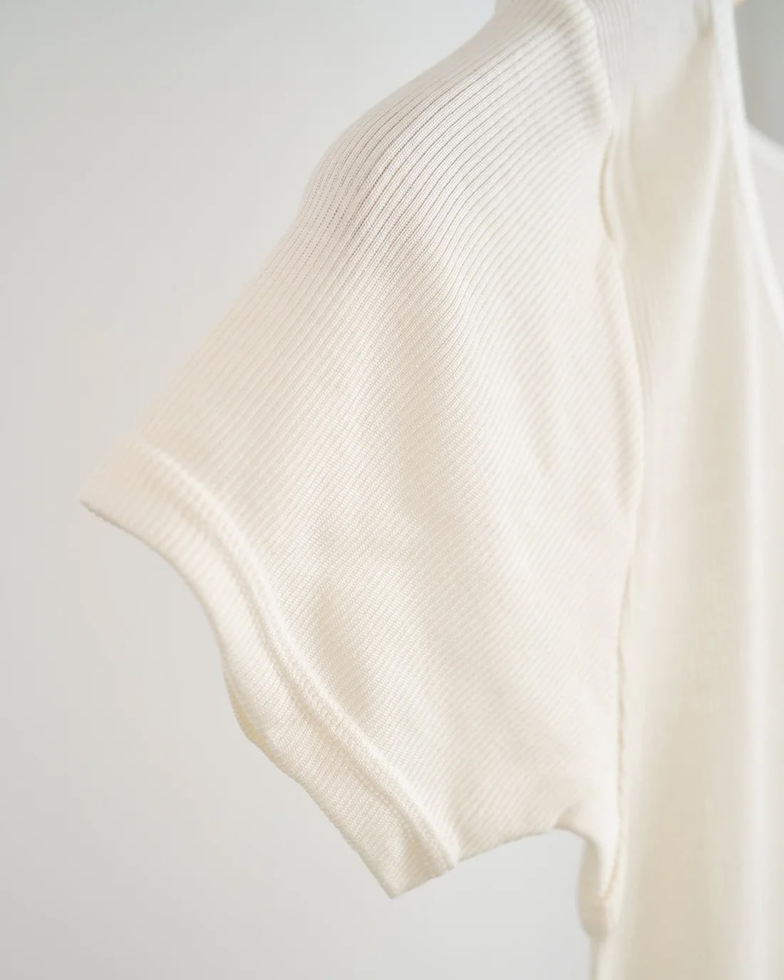 繊細なリブ編み生地が、身体の動きに合わせてとろけるように伸び縮み。肌に吸い付くようにフィットしながらも、締め付け感はゼロ。