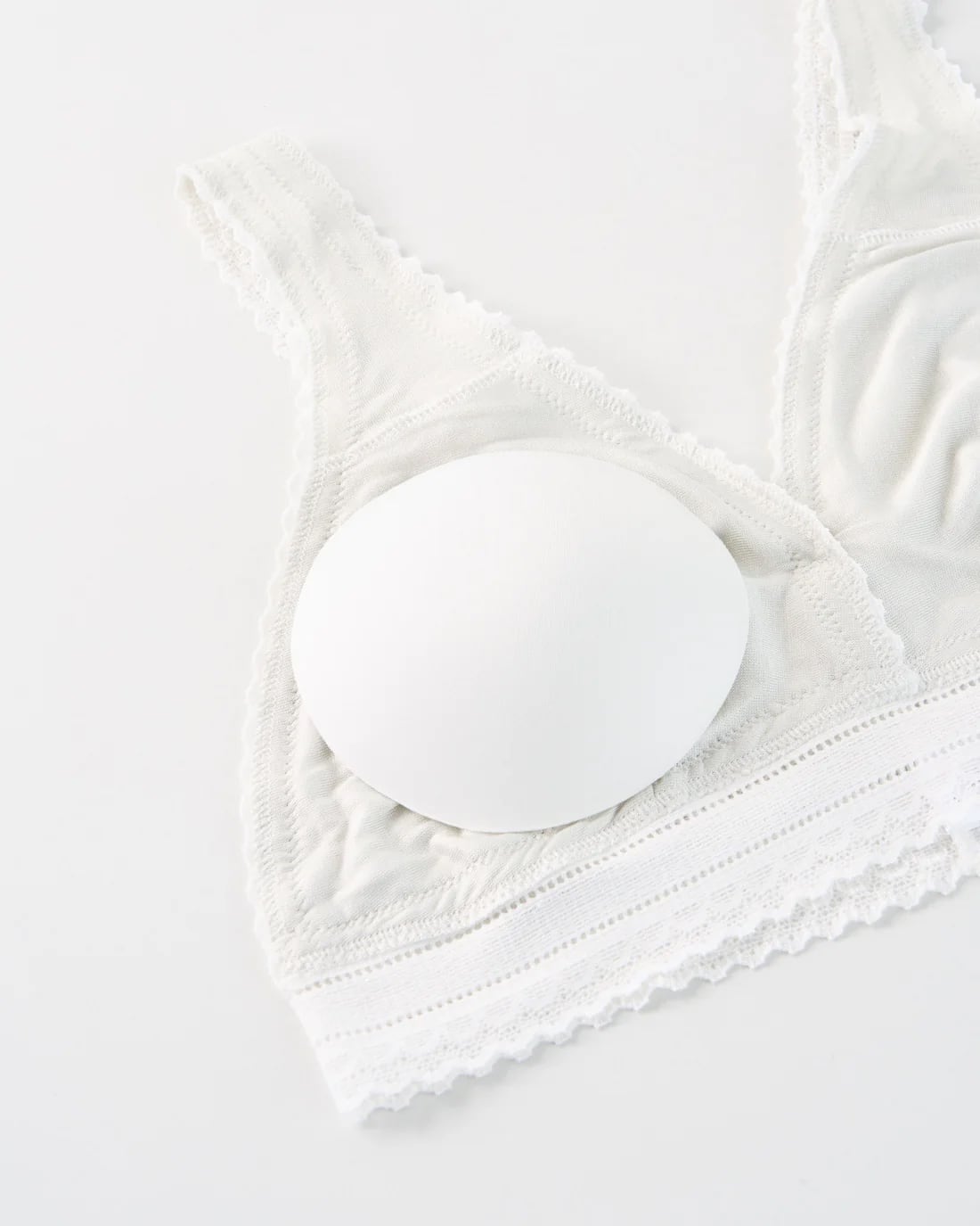 パッドを付けた状態でも締め付け感はありませんが、よりリラックスしたいときにはパットを外して、おやすみブラとしてもご着用いただけます。
