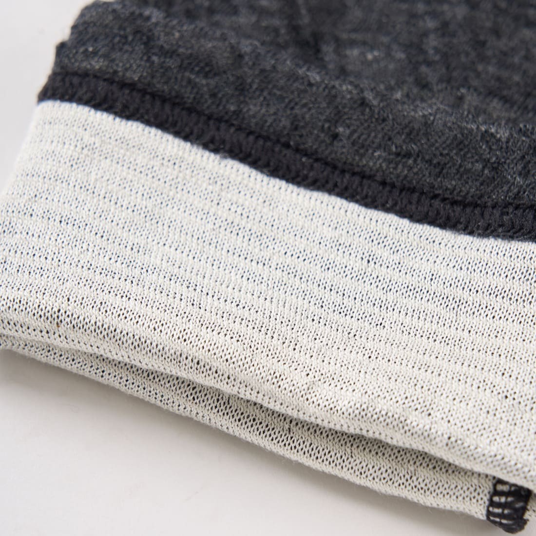 肌側シルク・外側ウールで起伏が生まれるように編み上げたことで、生地の中に空気を含み、蒸れにくく、さらりとした快適な肌触りを実現しています。