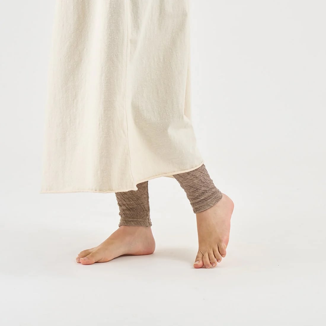 くらしきぬのレギンスの素敵なところは、お腹まですっぽり包まれる安心感があること。