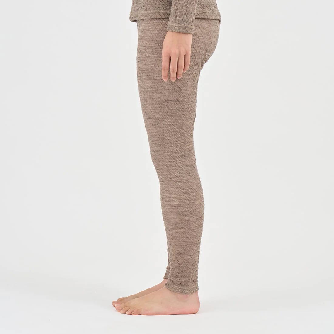 こちらのレギンスは肌側になめらかなシルク、外側に保温性に優れたウールを使用。天然素材ならではの特性が、肌の潤いを守りながら体全体をやさしく包み込みます。