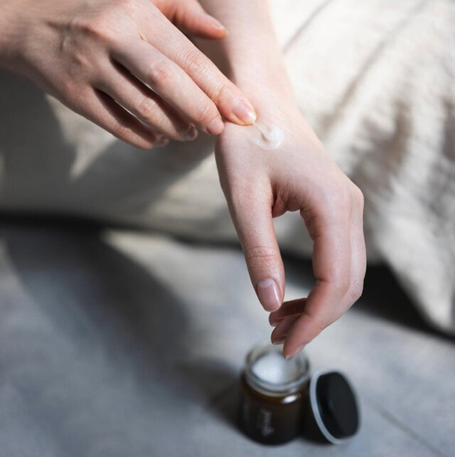 もともと軟膏として傷の治療に使われてきた形状のもの。肌の上で温めると瞬時に溶けてまるで自分の肌成分のように浸透していきます。